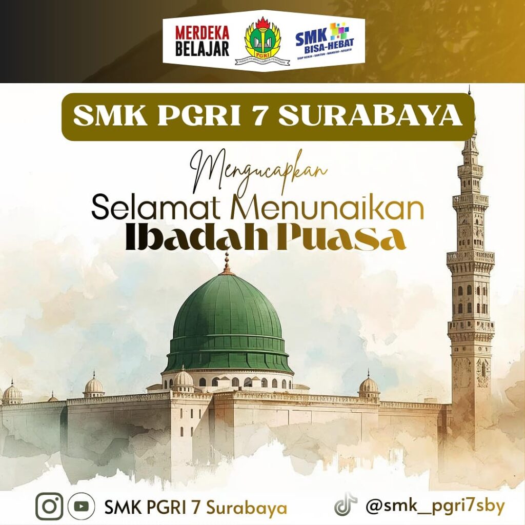 SMK PGRI 7 Surabaya dengan penuh kehangatan dan kebersamaan mengucapkan selamat menunaikan ibadah puasa kepada seluruh umat Muslim. Bulan suci Ramadan menjadi momen istimewa untuk meningkatkan keimanan, memperbanyak amal kebaikan, serta mempererat tali silaturahmi di lingkungan sekolah maupun masyarakat.