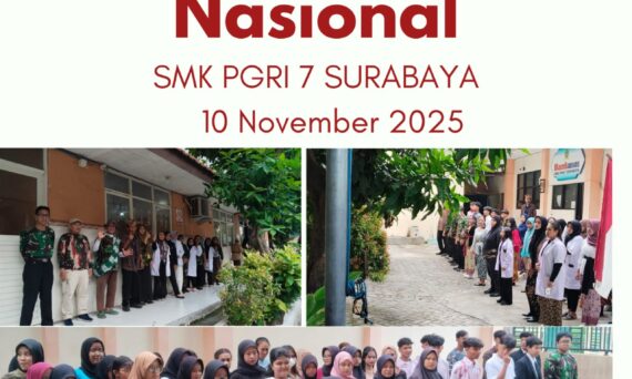 Peringatan Hari Pahlawan di SMK PGRI 7 Surabaya dilaksanakan dengan penuh khidmat dan semangat nasionalisme pada Senin, 10 November 2025. Kegiatan ini diikuti oleh seluruh siswa, guru, serta staf sekolah yang turut mengenakan pakaian bertema perjuangan sebagai bentuk penghormatan terhadap jasa para pahlawan bangsa. Suasana haru dan bangga menyelimuti pelaksanaan upacara bendera yang menjadi momen utama